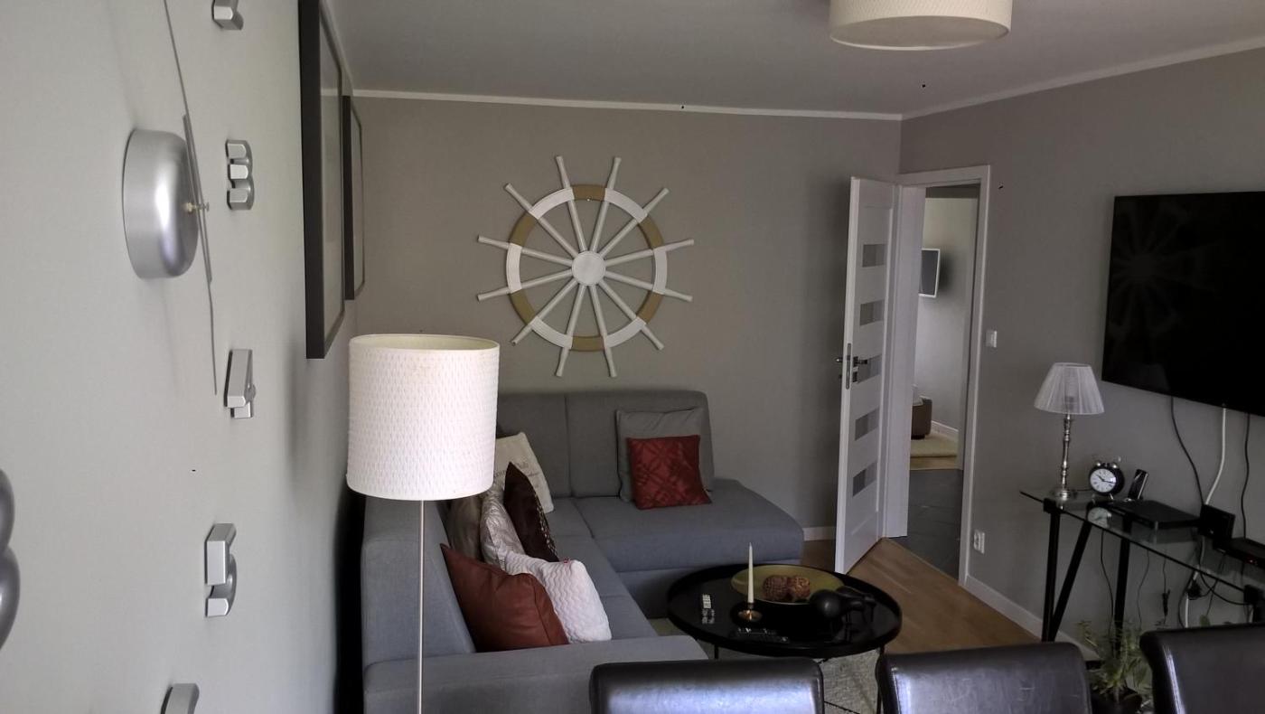 Oferta apartamentu obejmuje sypialnię (1), salon, kuchnię z pełnym wyposażeniem, w tym lodówką i ekspresem do kawy, a także łazienkę (1) z prysznicem oraz suszarką do włosów. W apartamencie zapewniono ręczniki i pościel.