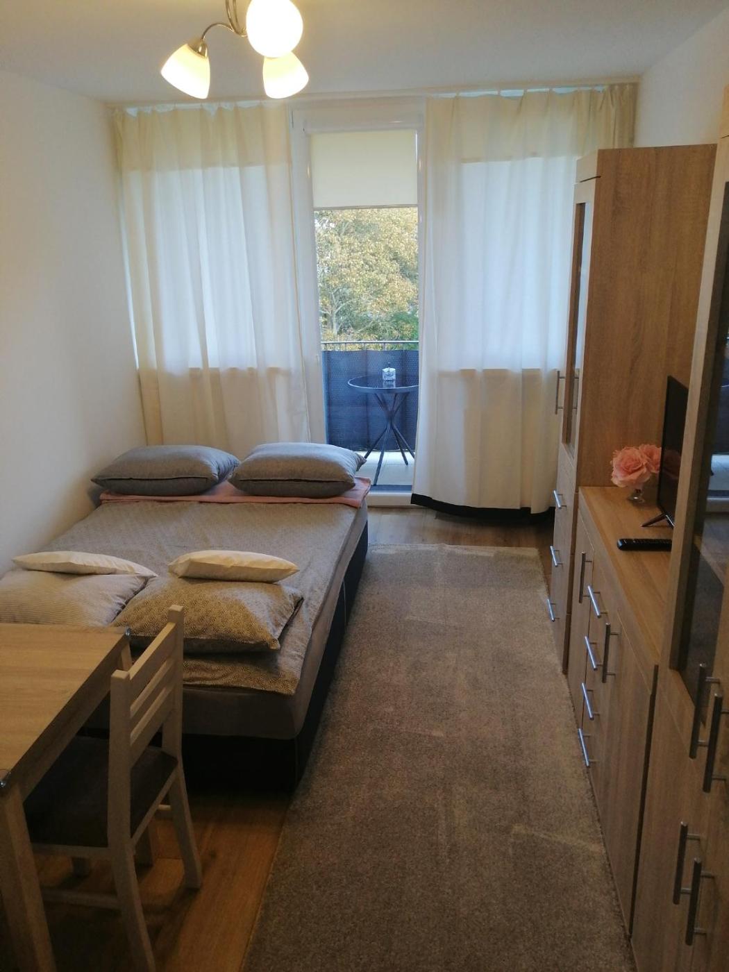 Apartament z 1 sypialnią. This apartment consists of 1 bedroom, a kitchenette and 1 bathroom with a shower and a hairdryer. In the well-equipped kitchenette, guests will find a stovetop, a refrigerator, kitchenware and a tea and coffee maker. This apartment features a wardrobe, heating, a flat-screen TV and a balcony. The unit offers 1 bed. Apartament - 2 osobowy. Powierzchnia pokoju ok.: 18 mkw.