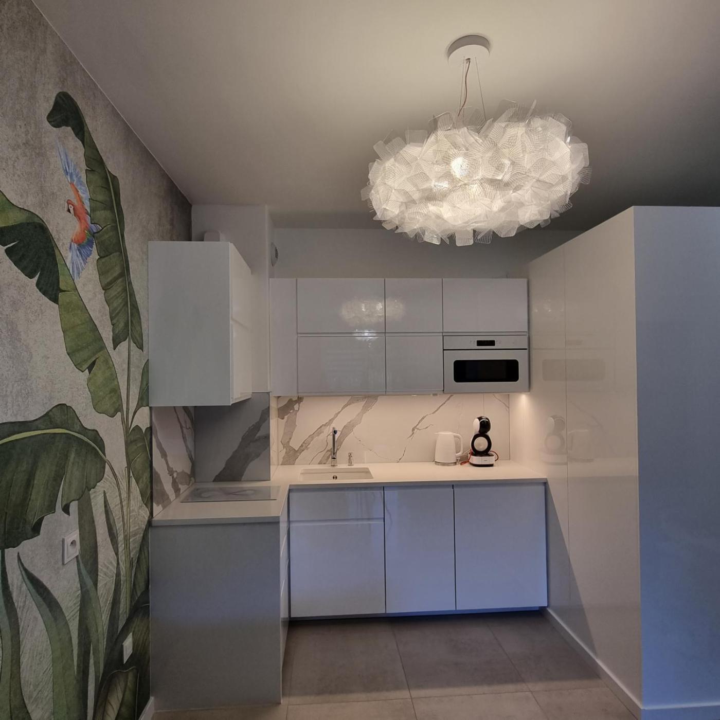 Apartament z 1 sypialnią. This air-conditioned apartment comprises 1 living room, 1 separate bedroom and 1 bathroom with a shower. Guests can make meals in the kitchen that comes with a stovetop, a refrigerator, a dishwasher and kitchenware. The apartment provides a flat-screen TV with streaming services, a washing machine, a coffee machine, a high chair for children as well as garden views. The unit offers 3 beds. Apartament - 4 osobowy. Powierzchnia pokoju ok.: 42 mkw.